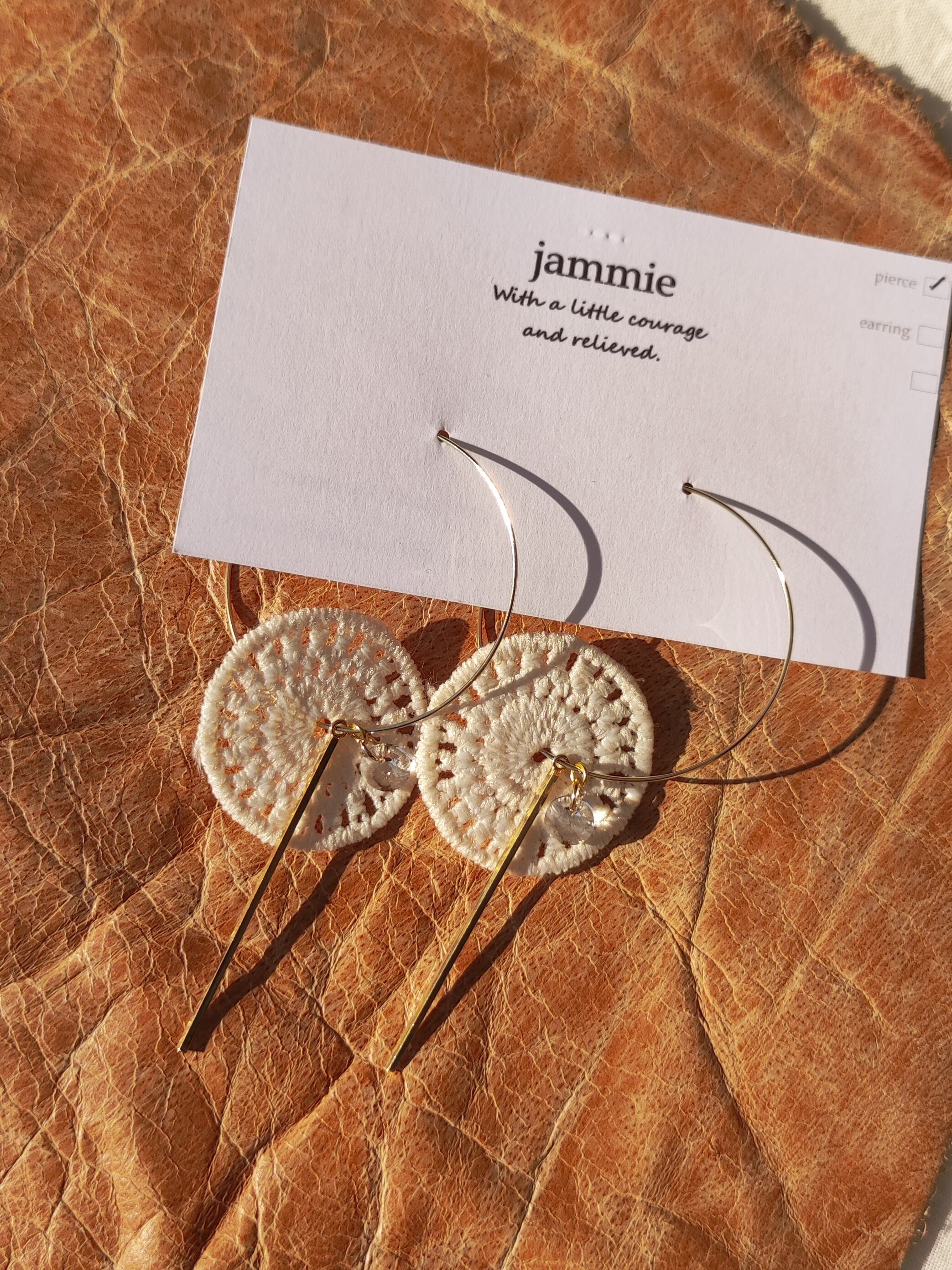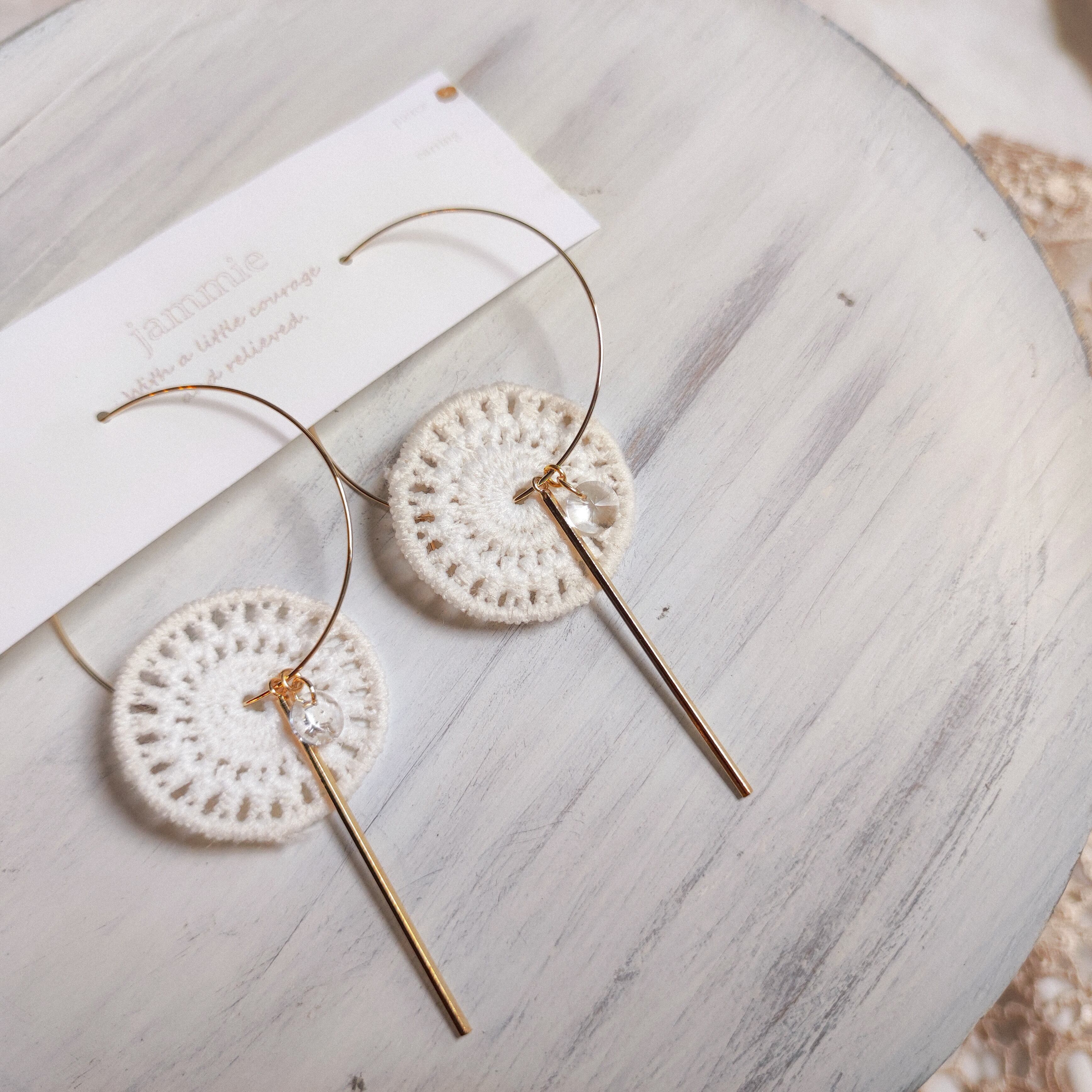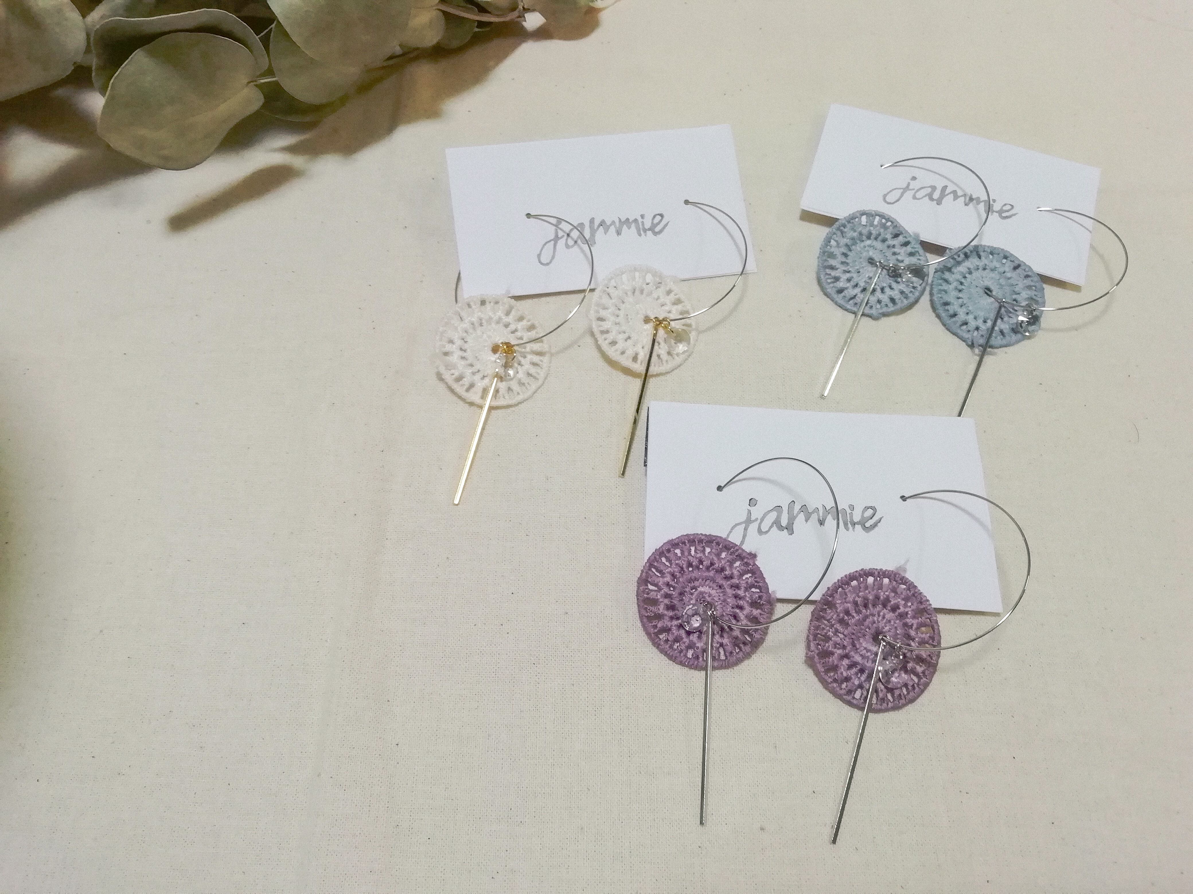 かぎ編み風レースとスワロフスキーのフープピアス