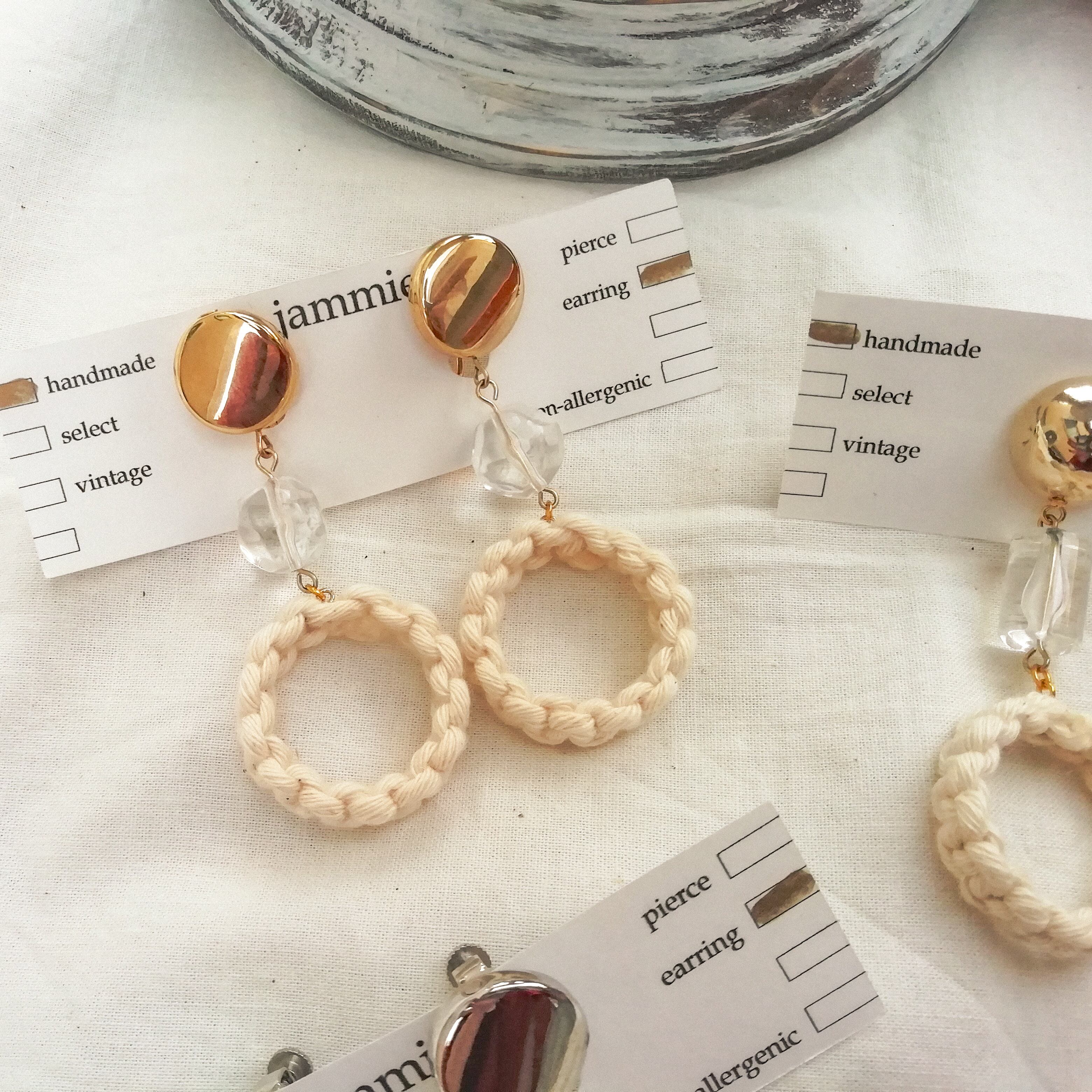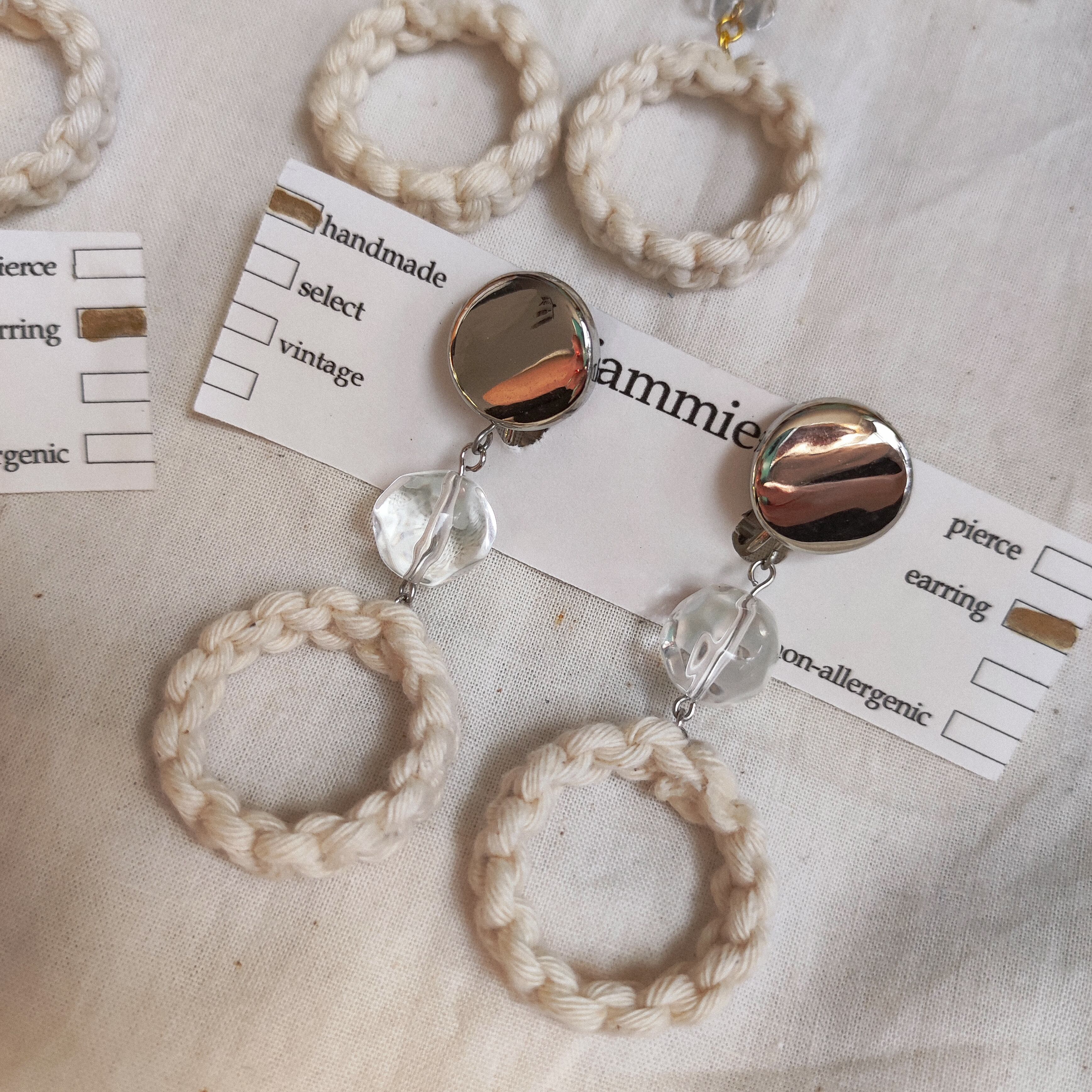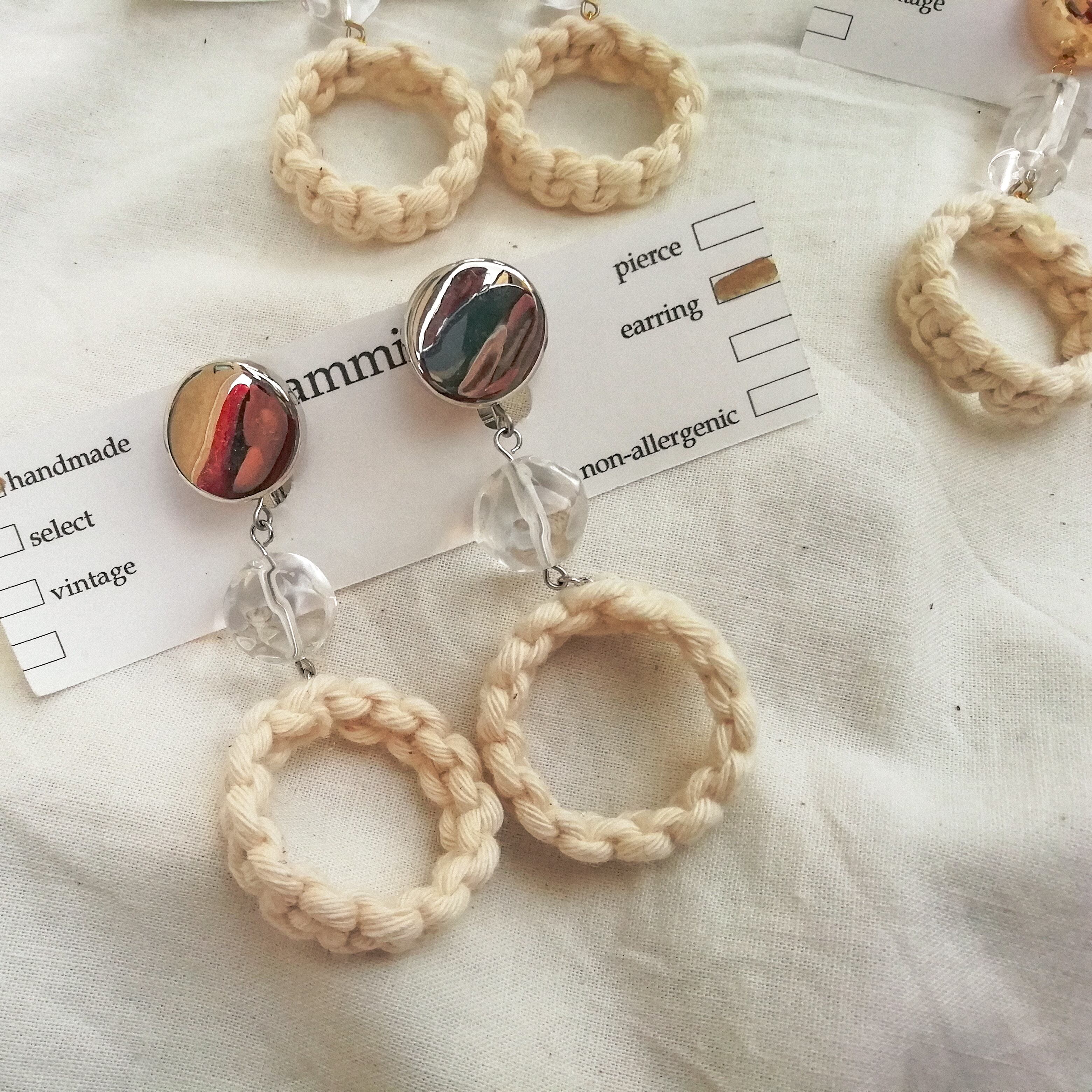 マクラメサークル × クリア 耳飾り