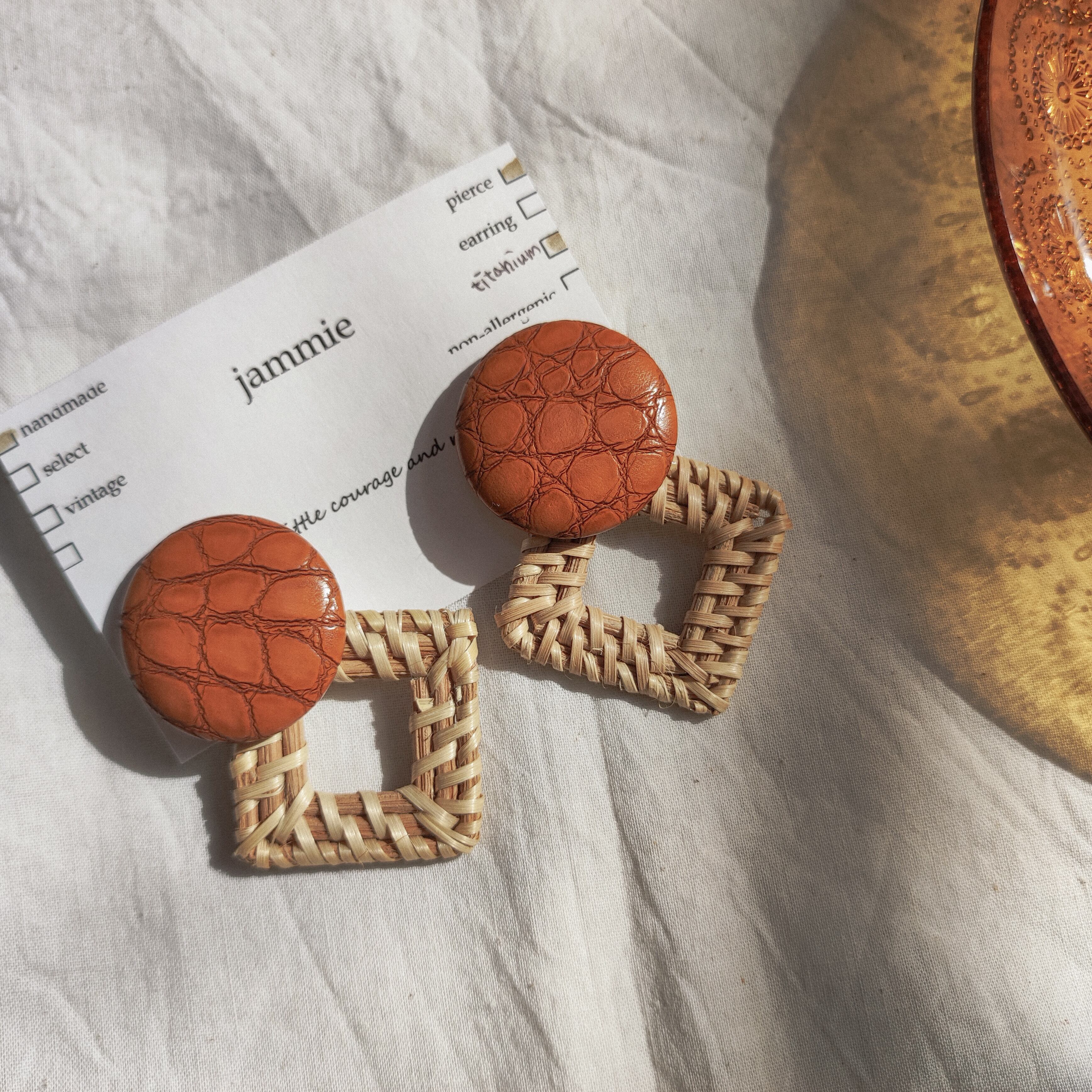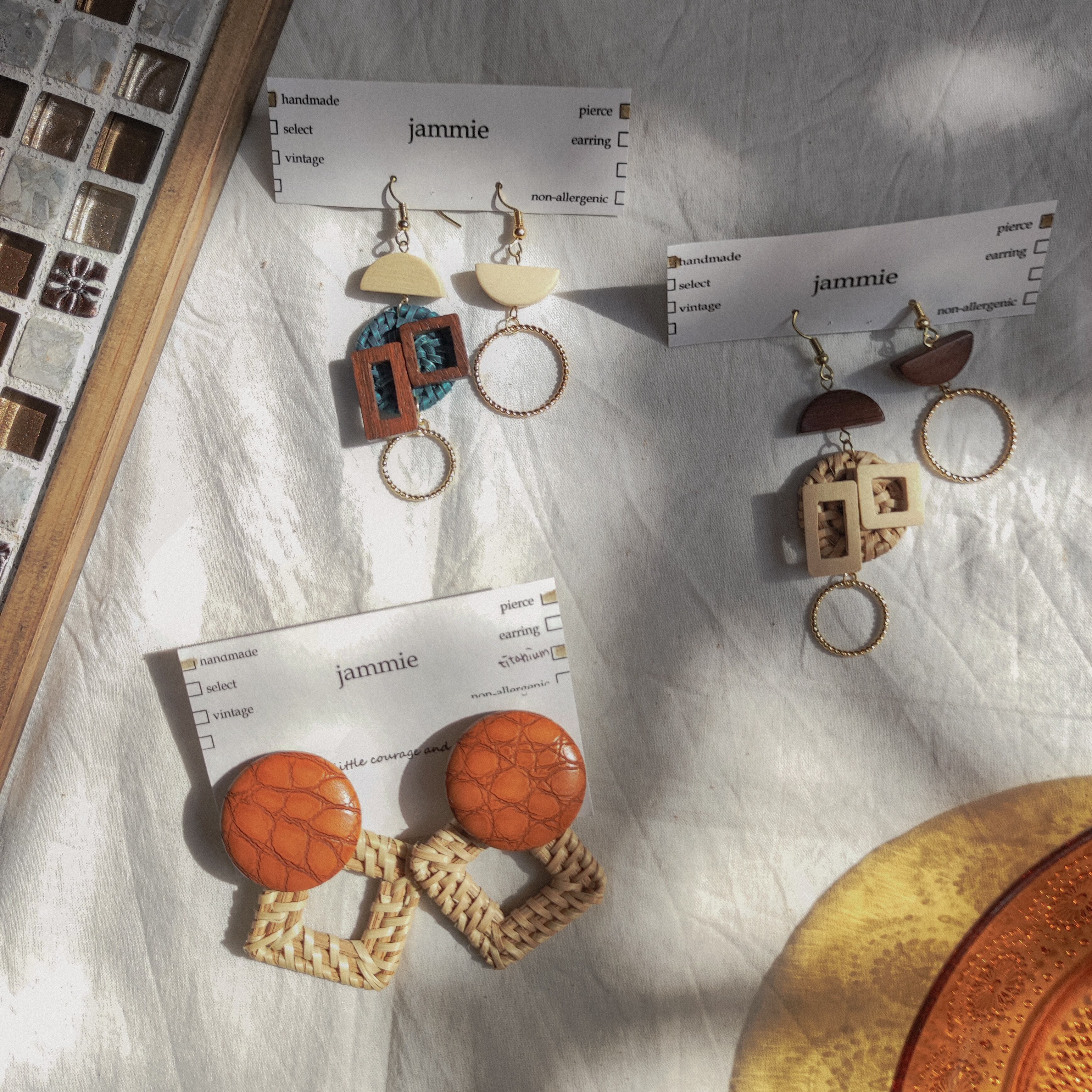 レザーとラタンを使用したピアス。