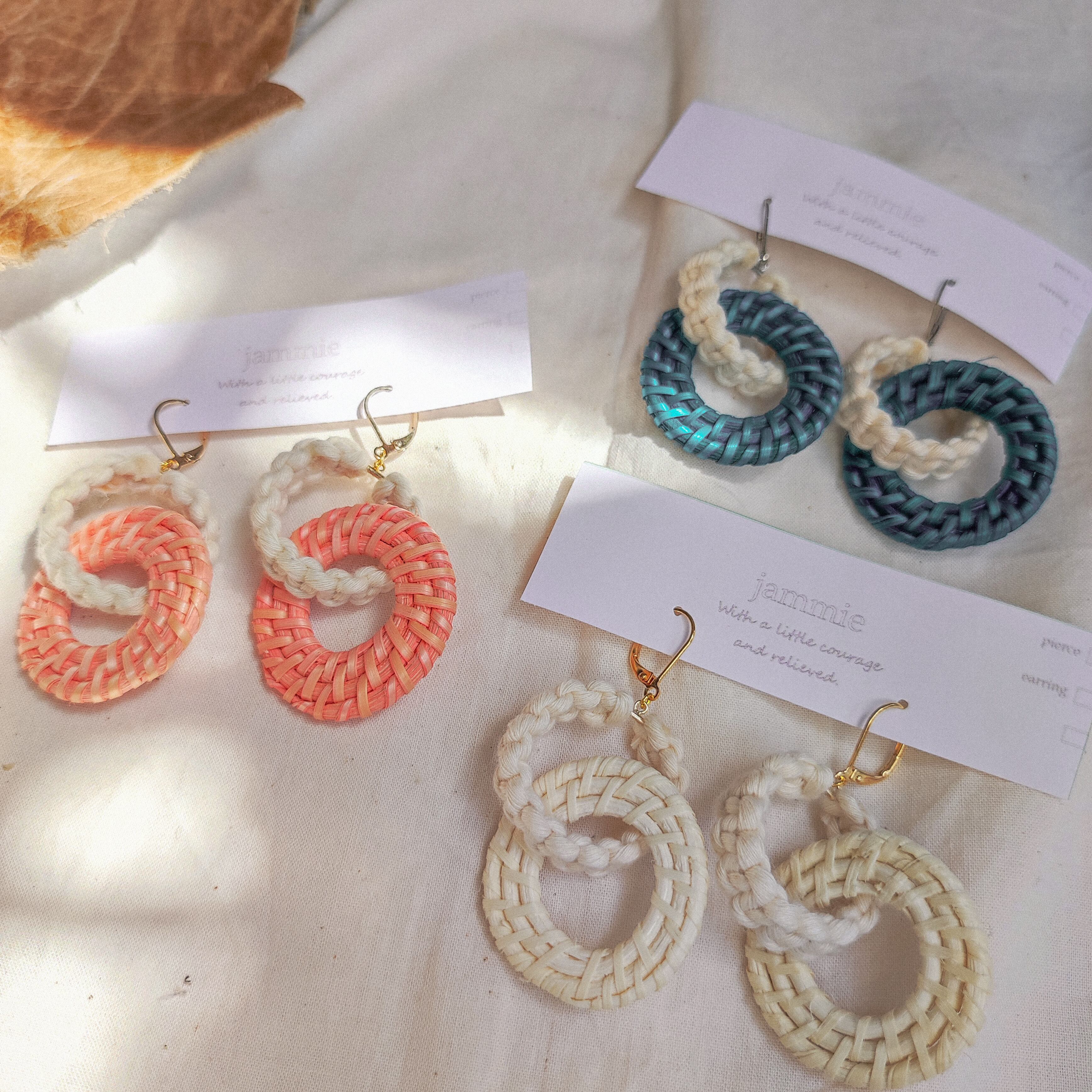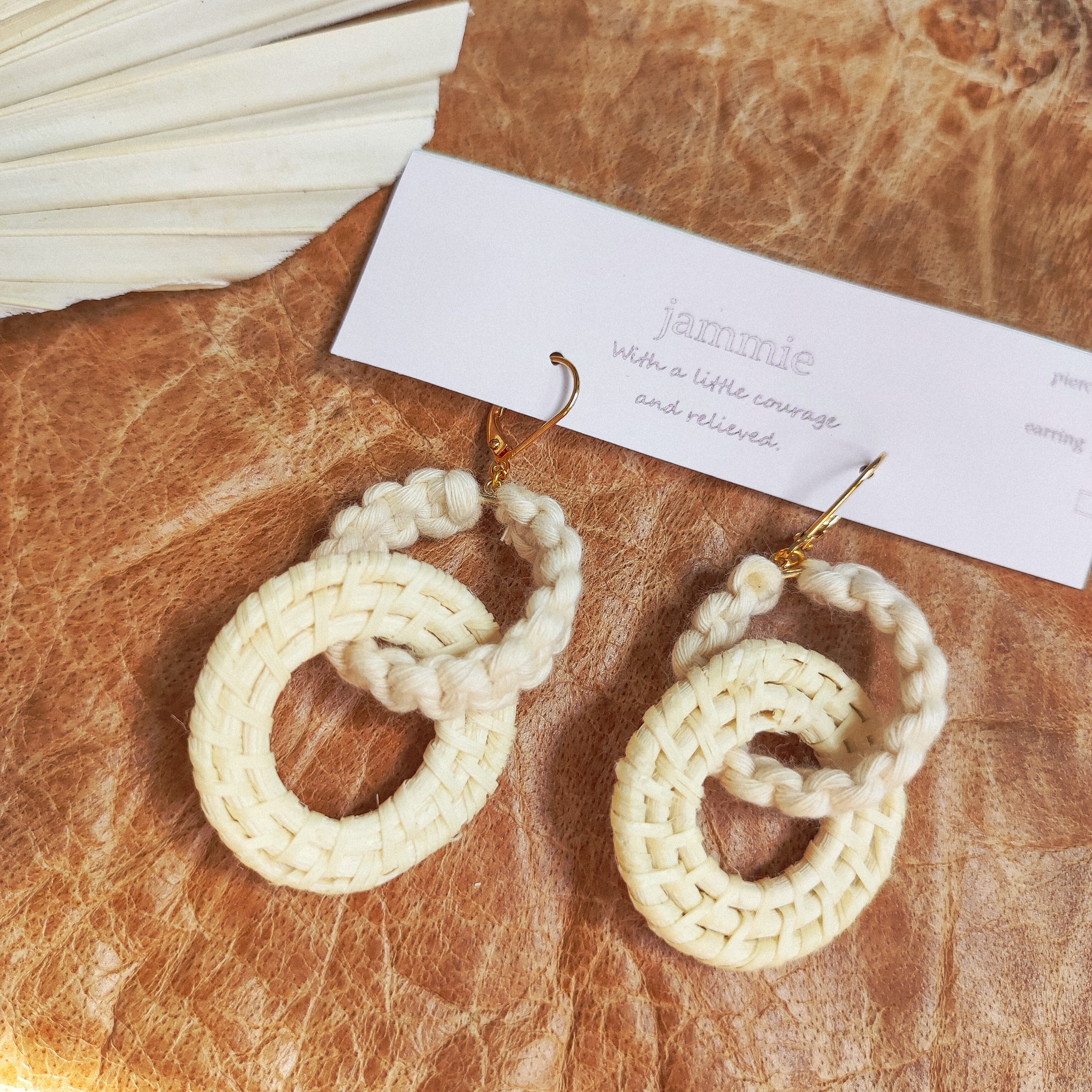 マクラメ × ラタン 耳飾り