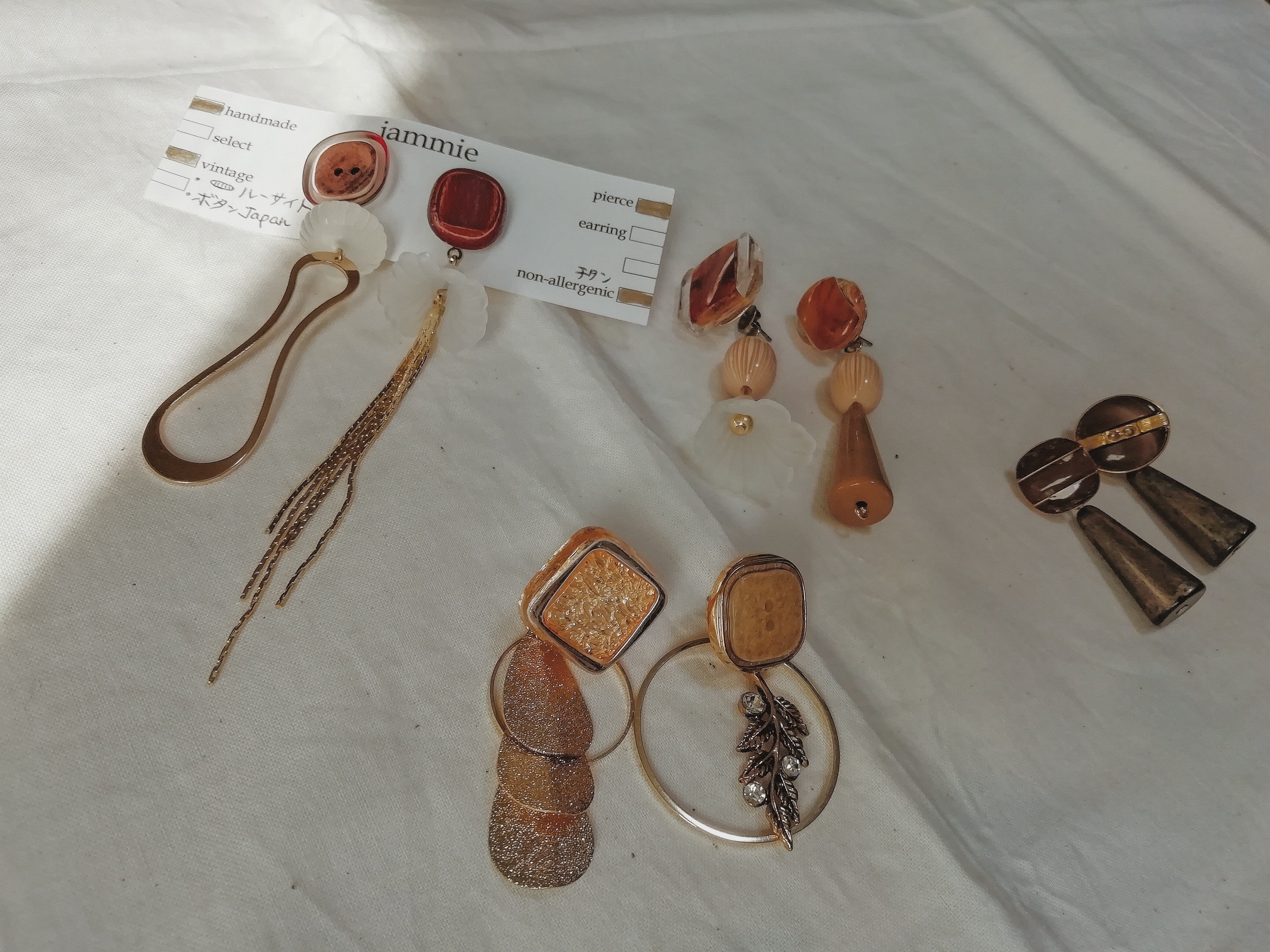 ヴィンテージボタンを使用した耳飾り。