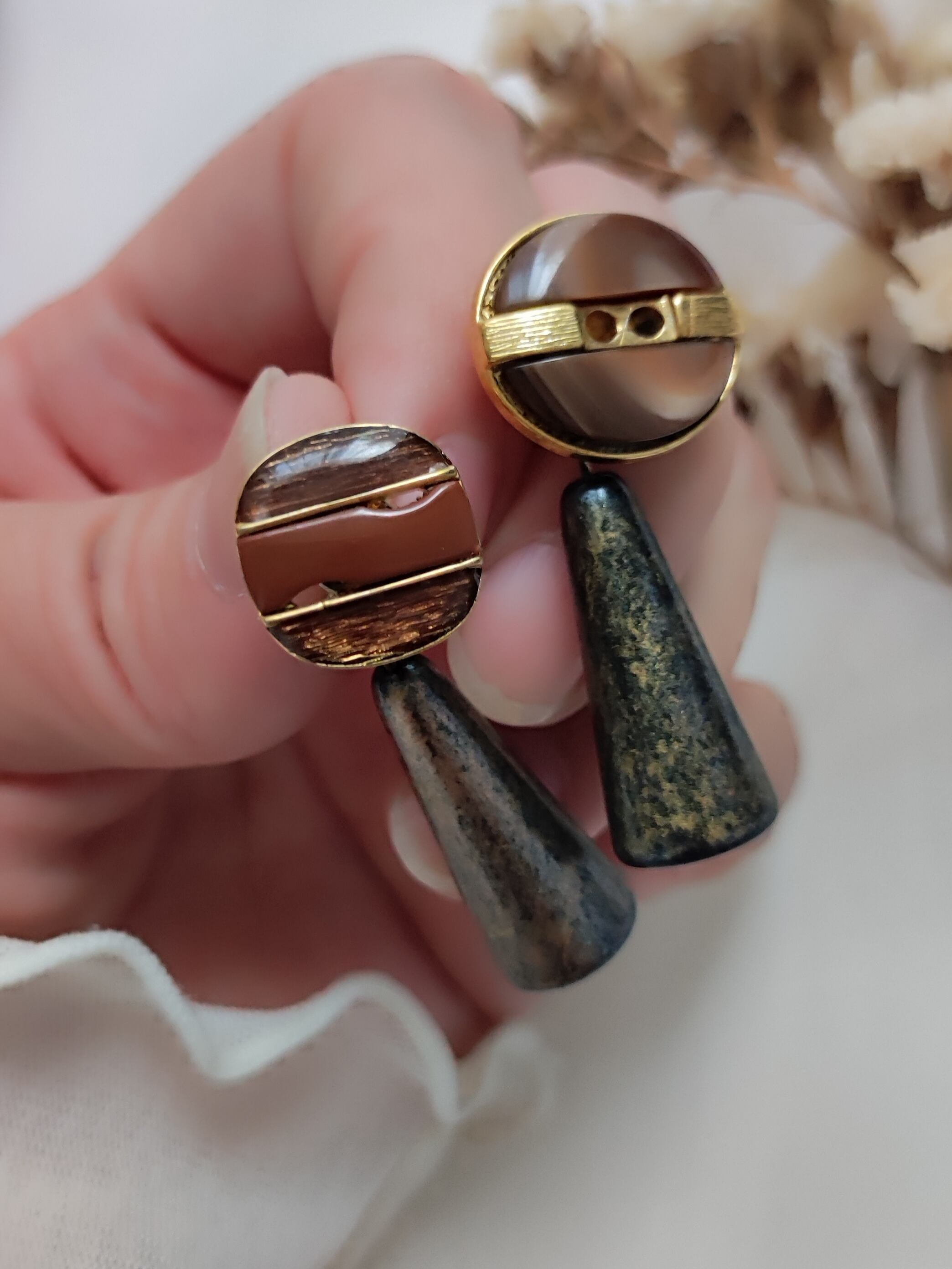 vintage button 耳飾り