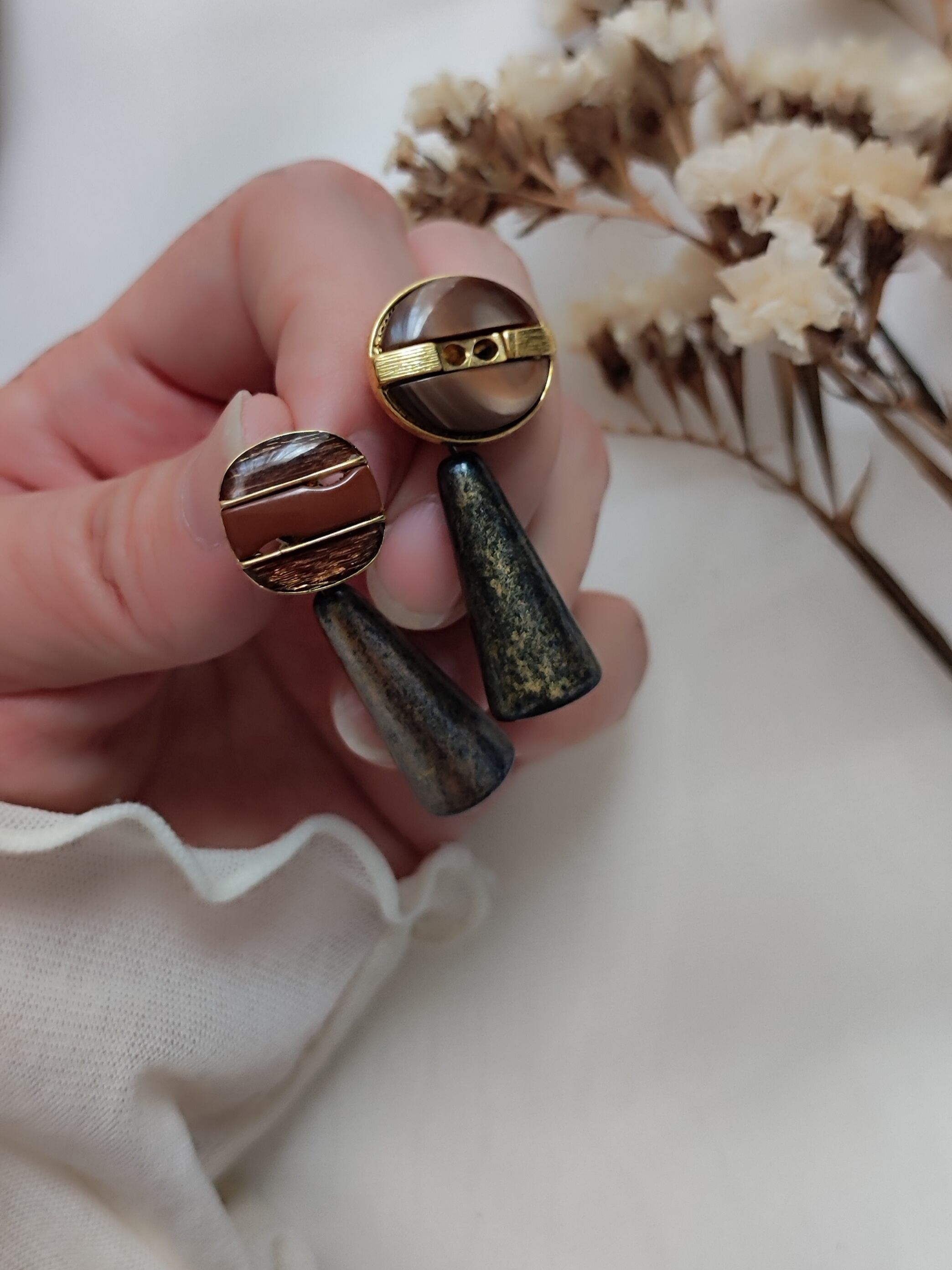 イタリアのヴィンテージパーツを合わせた耳飾り。