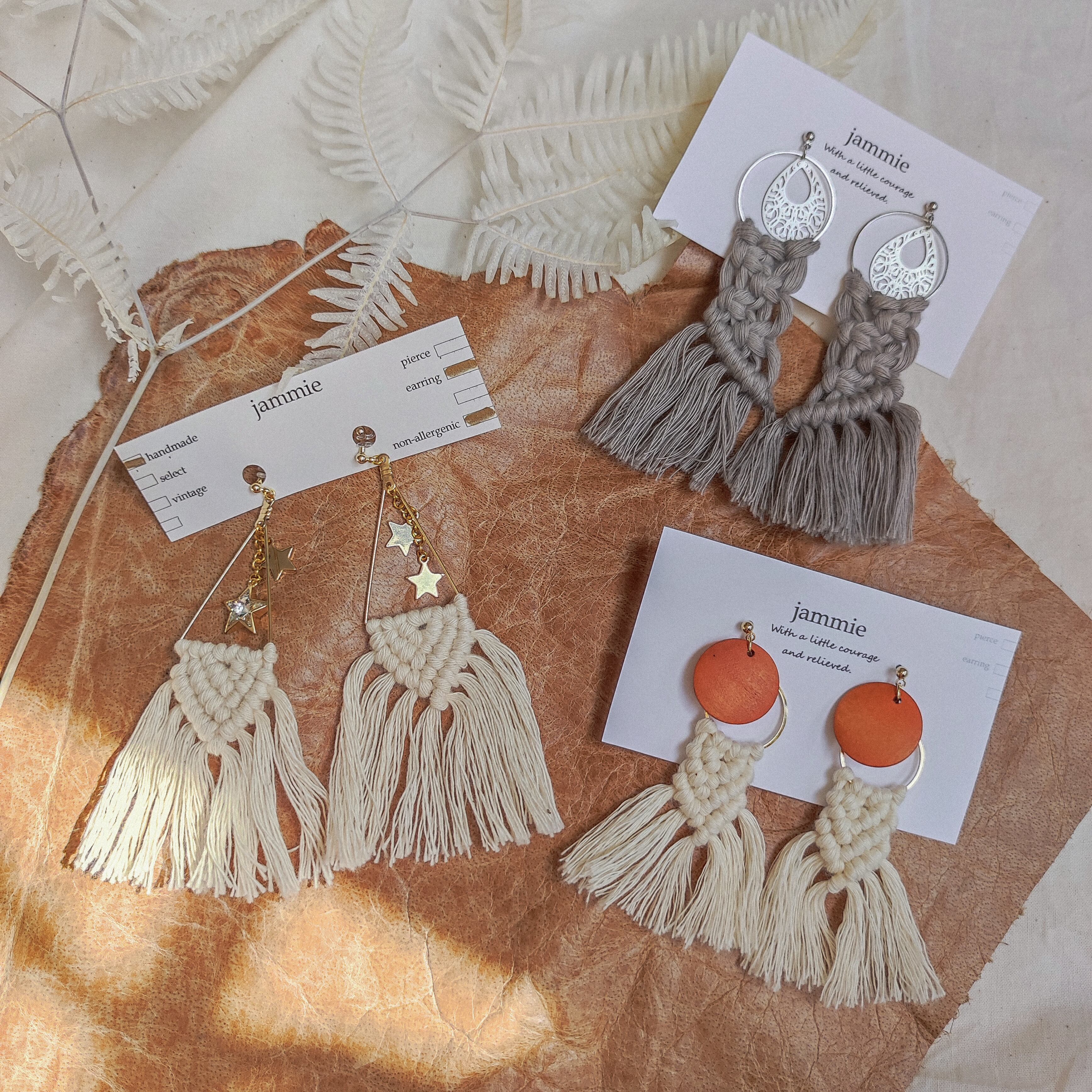 マクラメ × スターチャームの耳飾り