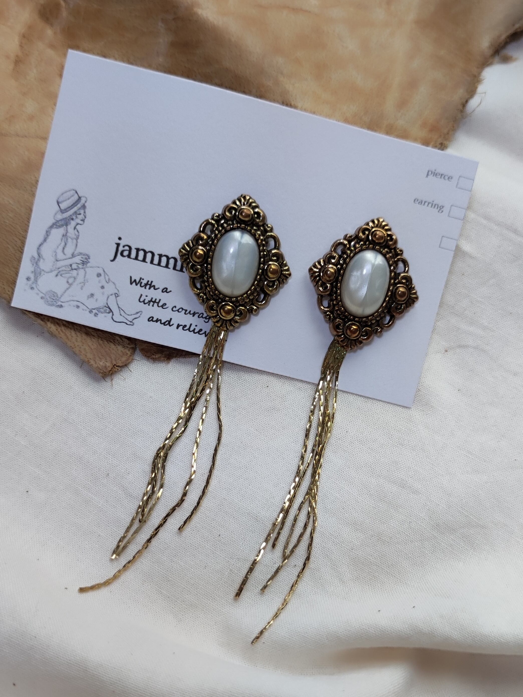 レトロボタンとゴールドタッセルのイヤリング